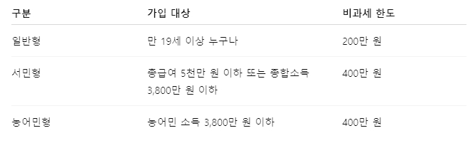 ✔ 혜택: 200~400만 원 비과세 + 초과분 9.9%